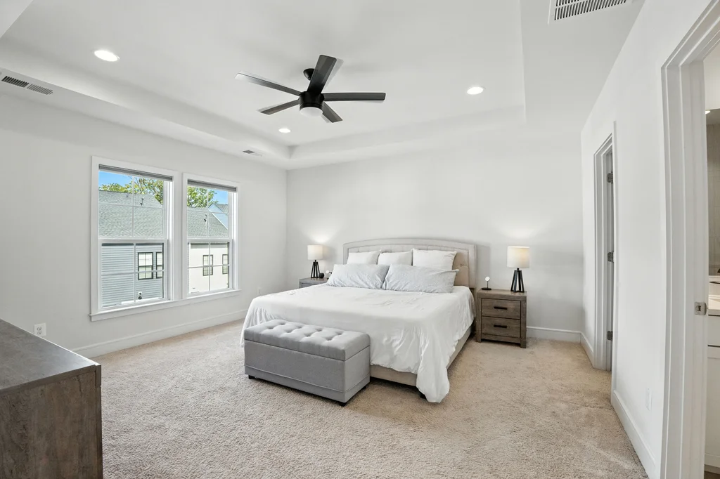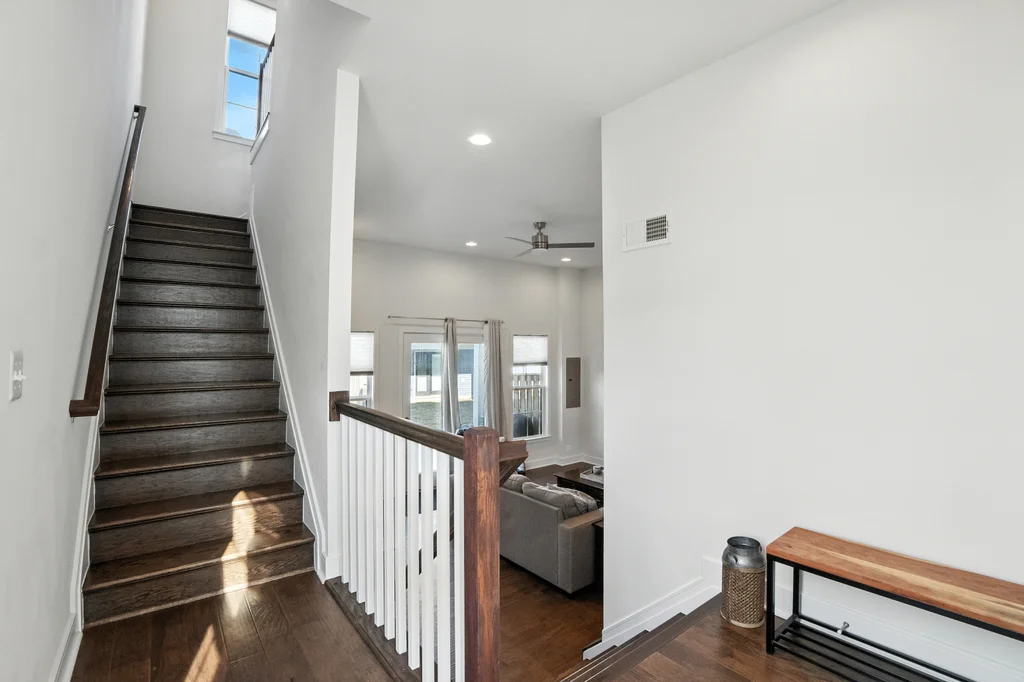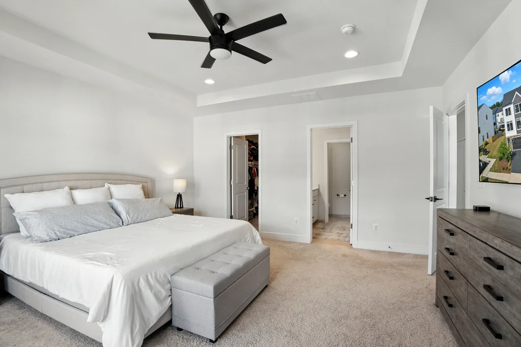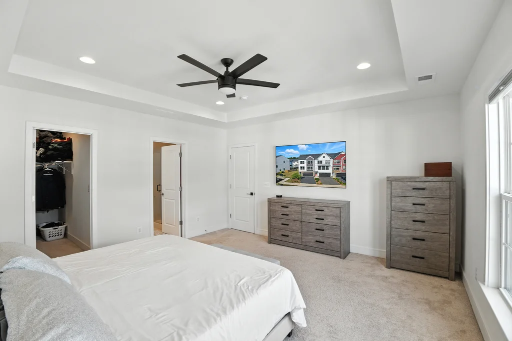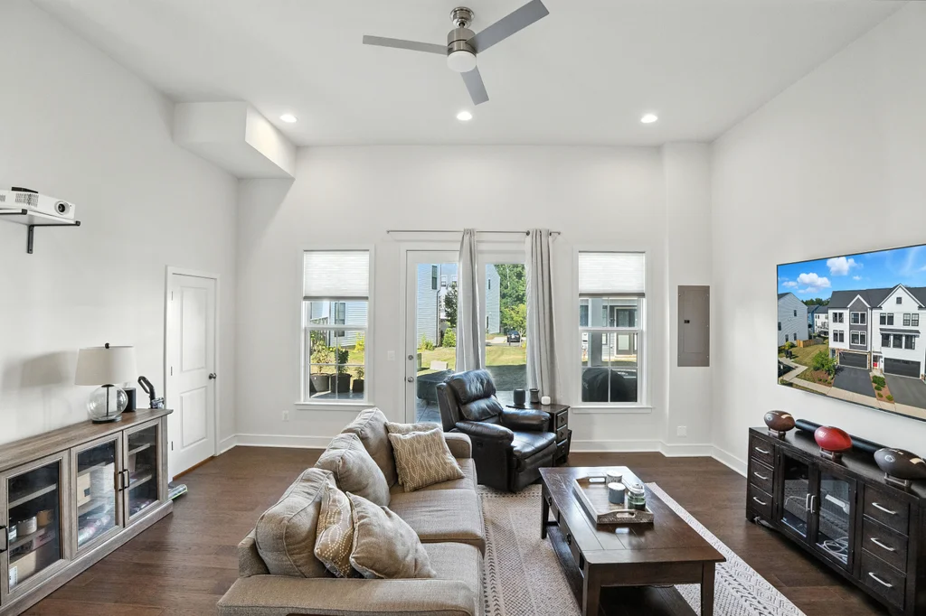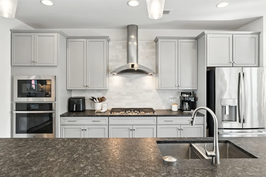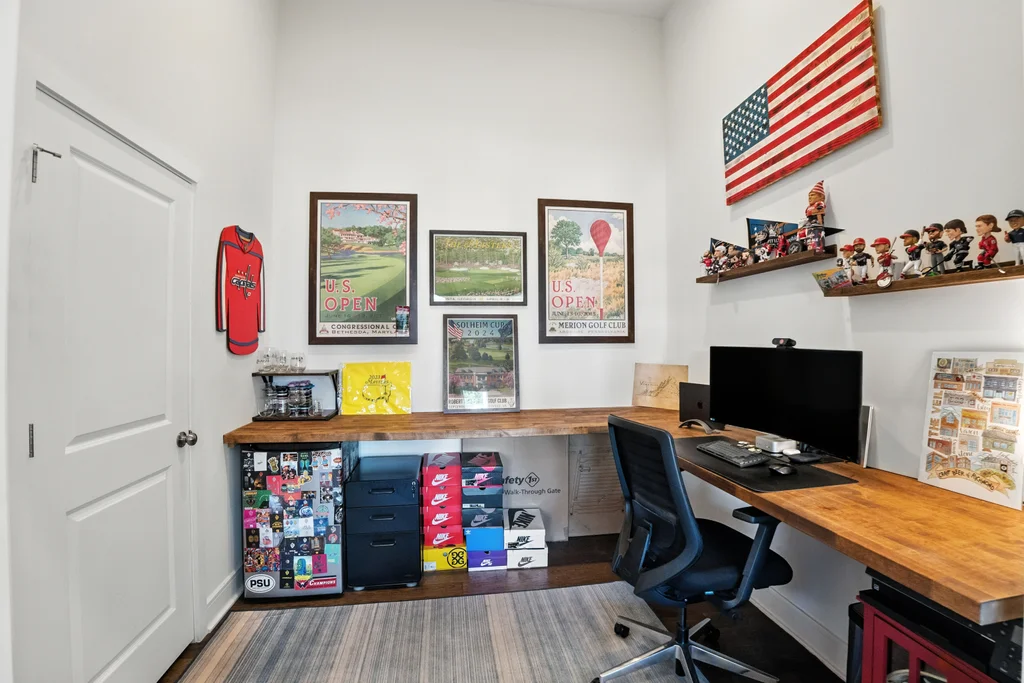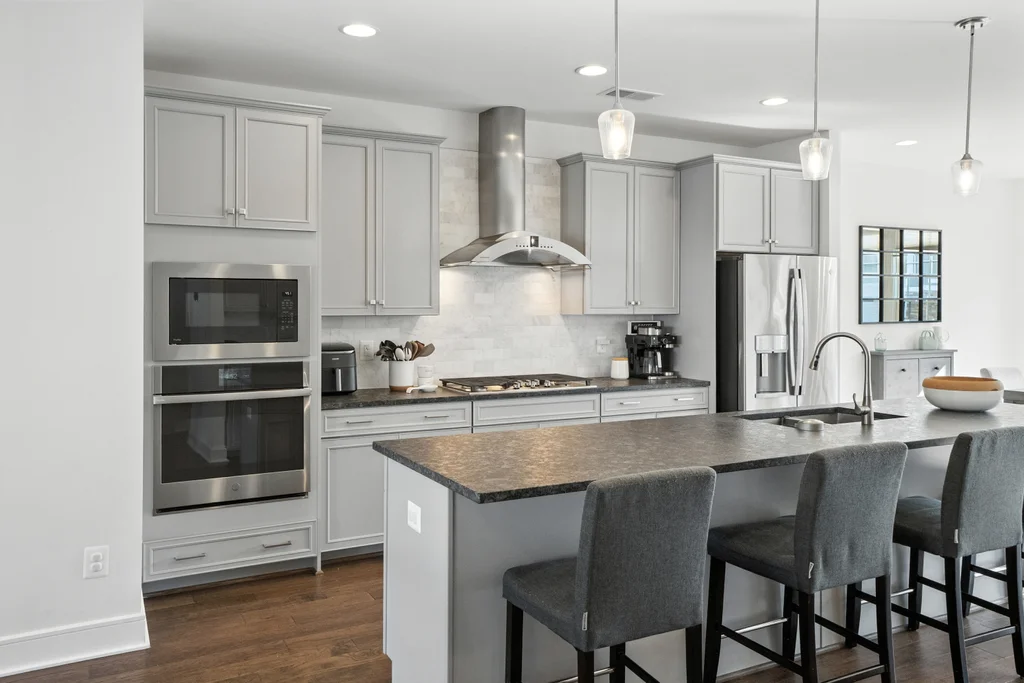 Welcome home to this beautifully upgraded 2020 Van Metre Carver model end-unit townhome, where thoughtful design and custom finishes set it apart. Flooded with natural light, the open-concept main level of this 2800+ sq ft lay out, showcases a gourmet kitchen with custom cabinetry, a striking tile backsplash extended to the ceiling behind a custom exhaust hood, and an impressive 11+ foot leather-finished granite island that anchors the space. The kitchen flows seamlessly into the expansive dining room and family room, where a gas fireplace with custom shiplap and built in shelving create a warm, inviting centerpiece. And open to your Trex deck—ideal for morning coffee or evening gatherings. Across three finished levels, this home offers three bedrooms, two full baths, two half baths, and a two-car garage. Oversized hallways, wide staircases, and upstairs loft/sitting area, add to the sense of space. The primary suite is a true retreat with a custom tray ceiling, walk-in closet and a spa-like bath featuring a frameless shower. Large secondary bedrooms each have custom detailed wall design and their own walk in closet. There is also a guest bath with custom tile and bedroom level laundry. The walkout lower level boasts soaring 13-foot ceilings, a custom built-in office nook, and a flexible living area that open to a 22’x15’ stamped concrete patio. Notable features include custom board-and-batten trim in the foyer, custom stone and tile in kitchen and baths, and extra windows on the end unit provide abundant natural light throughout. Perfectly located near shopping, dining, fitness and recreation centers, top Loudoun wineries and breweries, including the new Lark Brewery, and just minutes from Routes 50, 28, 606, 267, and Dulles International Airport, this home blends comfort, convenience, and modern Loudoun living.